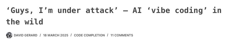 And then there’s this: Guy vibe coded his entire SaaS. Zero hand-written code. Got hacked within days. API keys exposed in client-side code. Database corrupted. “I’m not technical so this is taking me longer than usual to figure out.”